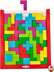 Descoperiți farmecul jocului de puzzle din lemn în stil Tetris, care este format din piese geometrice viu colorate. Jocul este proiectat pentru a dezvolta imaginația spațială și creativitatea copiilor de la 3 ani. Fiecare piesă este fabricată din lemn de calitate și este proiectată să se potrivească perfect în grilă.