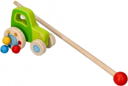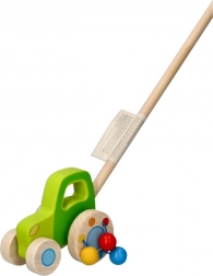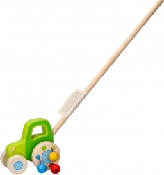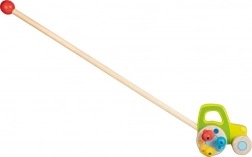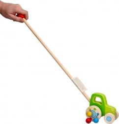 Tractorul din lemn pe băț este conceput pentru a încuraja copiii să se miște și să exploreze. Fabricat din lemn masiv, oferă rezistență și longevitate. Roțile din spate au mărgele care produc sunete la deplasare, stimulând suplimentar simțurile micilor exploratori.