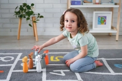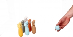 Popicele de 12,5 cm și bilele cu diametrul de 5 cm sunt ușor de prins și rostogolit de către copii – ideale pentru primele încercări „de bowling”.