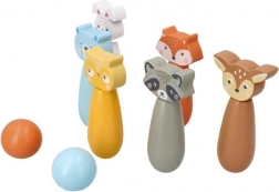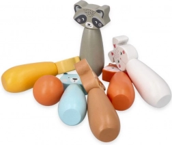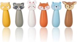 Descoperiți setul jucăuș de popice din lemn, cu motive adorabile de animale de pădure, care transformă orice încăpere într-un mic teren de bowling. Datorită dimensiunilor compacte, se potrivește perfect în camera copilului sau în living și este potrivit și pentru grădină. Copiii își exersează precizia, concentrarea și spiritul competitiv sănătos.