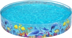Marea piscină rotundă pliabilă BESTWAY este ideală pentru grădină sau casă de vacanță. Construcția se stabilizează singură după umplere, pereții solizi din PVC rezistă la utilizarea de zi cu zi, iar grafica marină cu delfini și peștișori îi va încânta imediat pe copii. Piscina se curăță, se pliază și se depozitează ușor pentru sezonul următor.