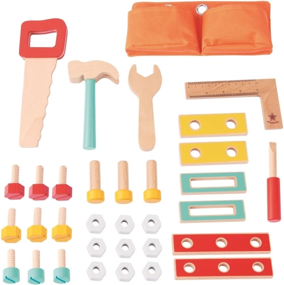 Cu buzunare pentru instrumente și etajere pentru depozitarea jucăriilor, permite copiilor să mențină ordinea și să se orienteze ușor printre instrumente.