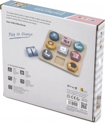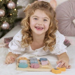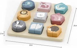 Puzzle-ul din lemn cu animale Viga este un instrument ideal pentru învățarea timpurie prin joc. Copiii introduc formele cu animale în deschiderile corespunzătoare, exersând în mod natural coordonarea mână–ochi, răbdarea și concentrarea. Prelucrarea de calitate și marginile netede oferă o joacă plăcută și sigură.