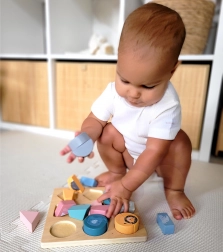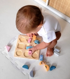 Potrivirea formelor în deschiderile corecte antrenează coordonarea mână–ochi, răbdarea și concentrarea încă din primii ani.