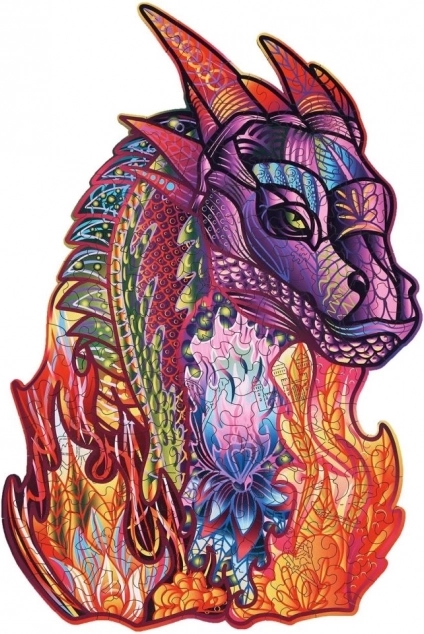 Acest puzzle din lemn cu motiv de dragon se remarcă prin culori intense și forme unice ale pieselor, care transformă fiecare asamblare într-o experiență deosebită. Este potrivit de la 14 ani, iar după finalizare devine o decorațiune stilată pentru cameră sau birou.