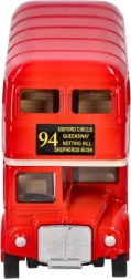 Model din metal stilat al legendarului autobuz londonez etajat de la Goki care îi va încânta pe micii și marii pasionați. Oferă mecanism pull-back pentru o cursă vioaie, anvelope din cauciuc pentru aderență mai bună și o construcție metalică de calitate, potrivită pentru joacă sau ca piesă de colecție.