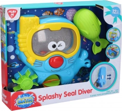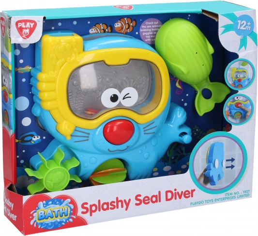 Acvariu cu moară de apă transformă băile copilului tău într-o experiență captivantă. Folosind lingura, umpleți cu apă ochelarii focii și priviți cum peștișorii din acvariu încep să danseze. Apăsați nasul focilor și bucurați-vă de un spectacol acvatic cu mori colorate.