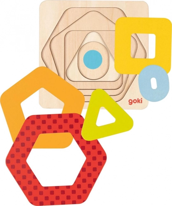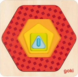 Puzzle-ul multistrat cu forme geometrice de la Goki este o jucărie educativă concepută pentru copiii peste 2 ani. Acesta vine cu un design colorat și este o alegere ideală pentru dezvoltarea abilităților motorii fine și a recunoașterii culorilor.
