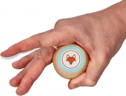 Corp din lemn de calitate, cu motive vesele (vulpe, inimă, ciupercuță etc.), plăcut la atingere și atrăgător pentru joacă.