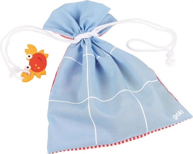 Descoperiți farmecul jocului clasic cu un nou aspect datorită Goki Pescuițe de Lemn! Acest joc este proiectat pentru a fi ușor de transportat datorită punguței din bumbac cu crab, care servește și ca suprafață de joc. Jocul conține: