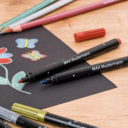 Cu acest set versatil combini linii precise și tușe late. Nuanțele metalice se evidențiază mai ales pe hârtie neagră sau colorată, creând efecte strălucitoare și oferind fiecărei creații un luciu unic. Perfect pentru felicitări, proiecte școlare și creații acasă.