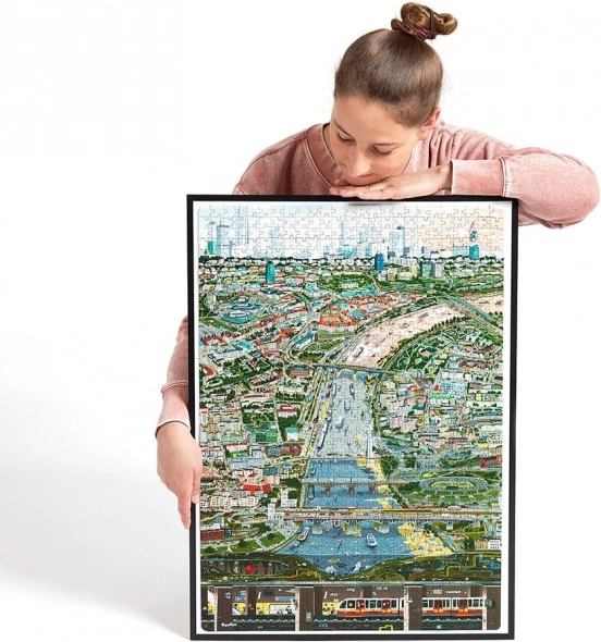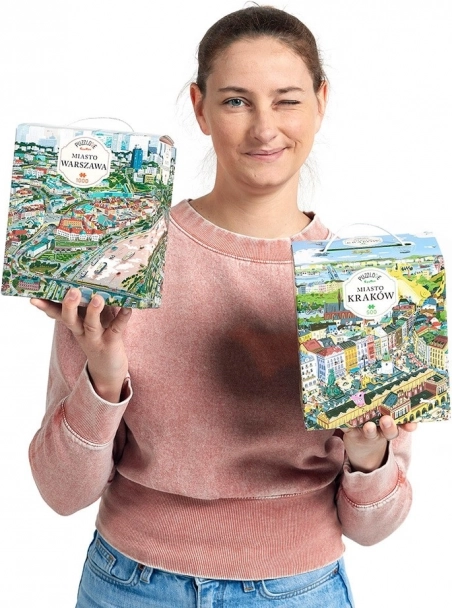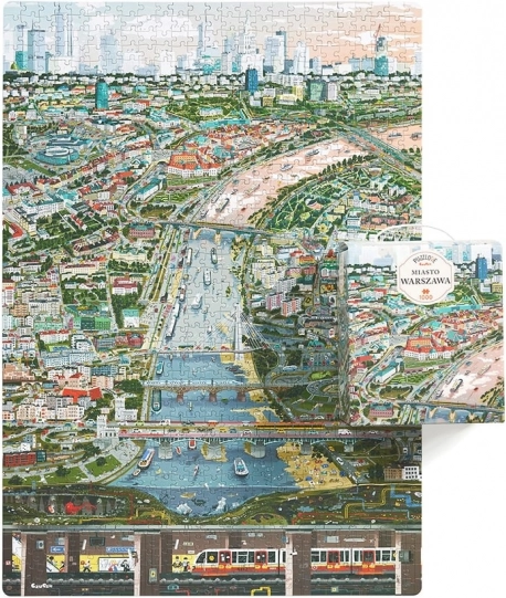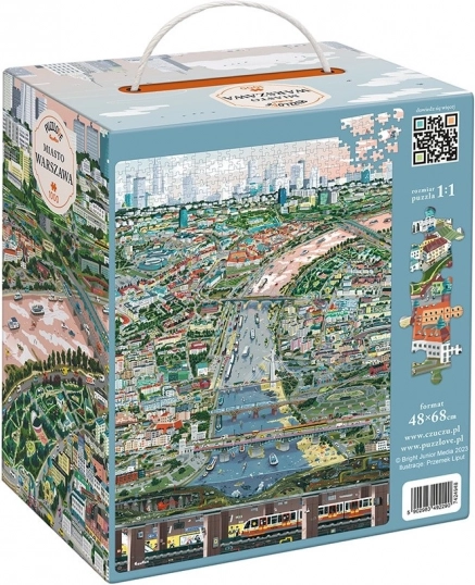 Pregătiți-vă pentru o provocare distractivă și explorați Varșovia „cu degetul și cu ochii” pe o imagine minunat ilustrată. Puzzle-ul de 1000 de piese îi va încânta pe iubitorii motivelor urbane, pe familii și pe împătimiții experimentați ai puzzle-urilor. Îl puteți asambla singuri, cu familia sau cu prietenii – așa cum vă place.