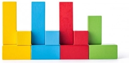 Setul de forme și culori diverse stimulează imaginația, logica și recunoașterea formelor. Ideal pentru turnuri, poduri și construcții simple.
