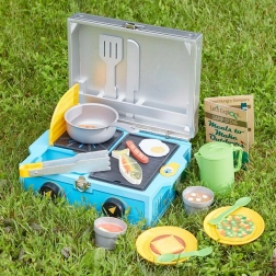 Jucăria în formă de bucătărie de camping este ușor de depozitat și transportat, ideală pentru distracția în aer liber sau acasă.