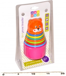 Jucărie pentru copii îndrăgită, care dezvoltă motricitatea fină și percepția culorilor. Setul conține 9 pahare de dimensiuni diferite, care pot fi suprapuse sau introduse unul în altul. Susține coordonarea mână–ochi, recunoașterea culorilor și învățarea dimensiunilor într-un mod ludic.