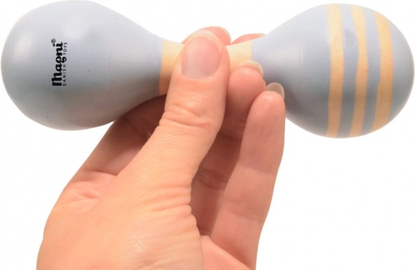 Maracasele pentru copii, cu un design drăguț de animăluțe din Arca lui Noe, stimulează curiozitatea naturală și dragostea pentru muzică. Datorită lemnului solid, complet lăcuit, se țin confortabil în mâinile mici și oferă un sunet plăcut, neagresiv, potrivit pentru cei mai mici.
