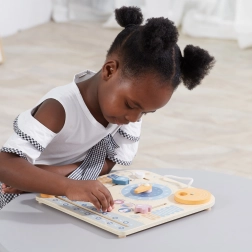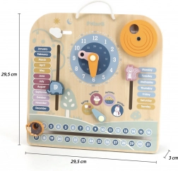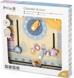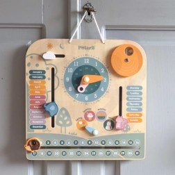 Calendar și ceas din lemn PolarB Montessori este combinația perfectă între joacă și învățare. Ajută copiii să învețe să recunoască timpul și zilele săptămânii, să învețe anotimpurile și vremea cu ajutorul elementelor interactive.