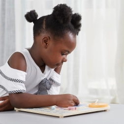 Jucăria este fabricată din materiale ecologice, ceea ce o face un instrument educațional sigur și durabil.