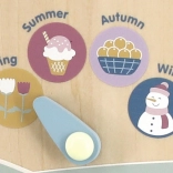 - Elemente interactive: Părți mobile pentru a învăța timpul și vremea.