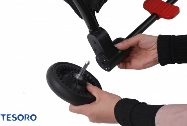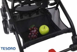 - Pliare ușoară cu un singur buton – căruciorul stă pe roți după pliere și poate fi depozitat la orizontală.