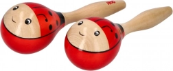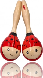 Veselile maracas în design de buburuze sunt create pentru mâinile copiilor – au mânere din lemn netede, ergonomice, și capete rezistente lăcuite în culori. În timpul jocului creează tonuri plăcute de zornăit, care îi încurajează pe copii să descopere ritmul și să cânte împreună.