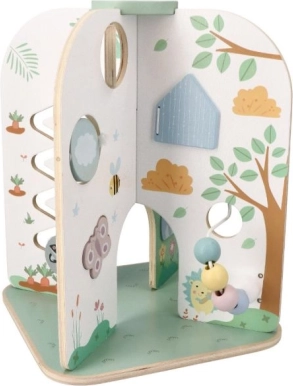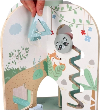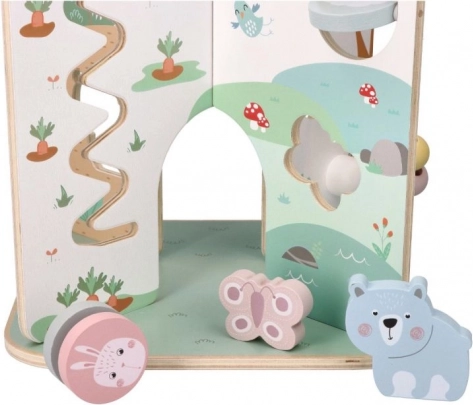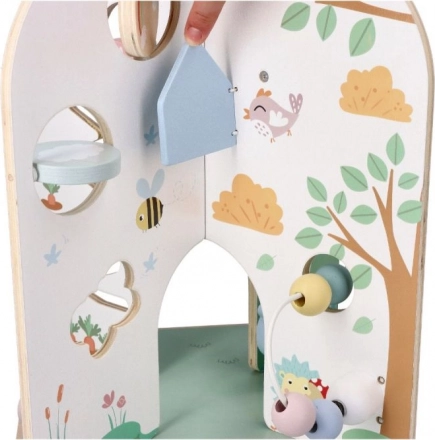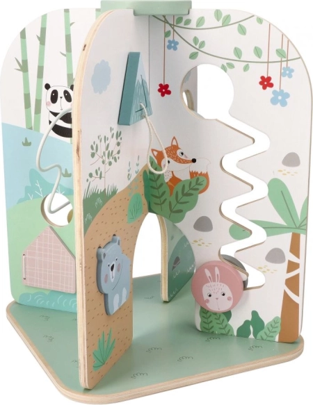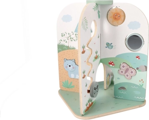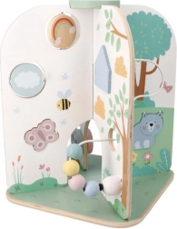 Bucurați-vă de distracție cu centrul de activități din lemn, care este un cadou ideal pentru copiii de la 18 luni. Această jucărie frumoasă, mare și funcțională susține dezvoltarea abilităților motorii fine și este potrivită pentru jocuri imaginative.