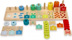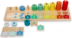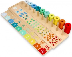Descoperiți o jucărie educativă inteligentă, care îi ghidează pe copii în primii pași în lumea numerelor. Baza din lemn cu pini și inele permite numărarea intuitivă de la 1 la 10, în timp ce piesele cu numere ajută la recunoașterea formelor și a ordinii corecte.