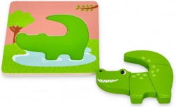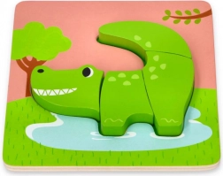 Descoperiți un set distractiv de patru puzzle-uri din lemn cu animăluțe – crocodil, hipopotam, bufniță și leu. Piese robuste pentru mâini mici, dezvoltarea motricității fine, a coordonării mână–ochi și a recunoașterii formelor. Fiecare puzzle are dimensiunea de 16,5 × 16,5 cm și este ideal pentru primele încercări de asamblare.