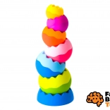 O combinație reușită de design atractiv care stimulează imaginația și creativitatea. Prin stivuirea formelor de dimensiuni diferite se activează musculatura fină și se dezvoltă motricitatea fină. Susține dezvoltarea corectă a coordonării mână-ochi și o dezvoltare psihomotrică sănătoasă. Turnul de stivuire are 7 piese, care pot fi rotite, desfăcute și stivuite în diverse moduri.