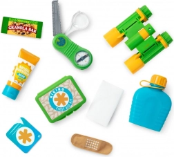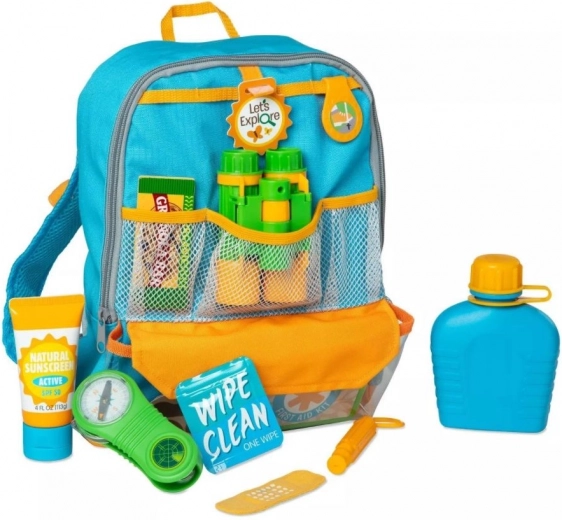 Setul pentru micii exploratori de la Melissa & Doug 'Let's Explore' oferă copiilor oportunitatea captivantă de a juca aventuri și expediții în aer liber. Acest set include un rucsac practic albastru-portocaliu, ideal pentru depozitarea tuturor accesoriilor necesare pentru excursii. În pachet, copiii vor găsi un binoclu, o busolă, cremă solară, șervețele umede și o sticlă de apă, permițându-le să învețe cum să se pregătească pentru o adevărată experiență în natură.