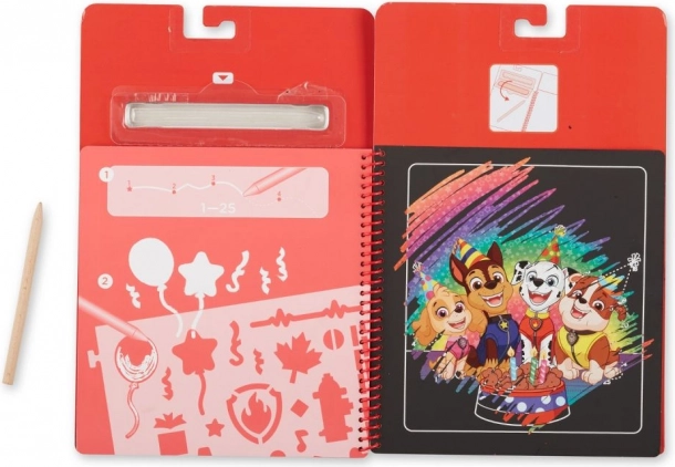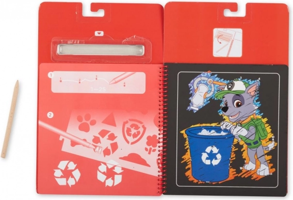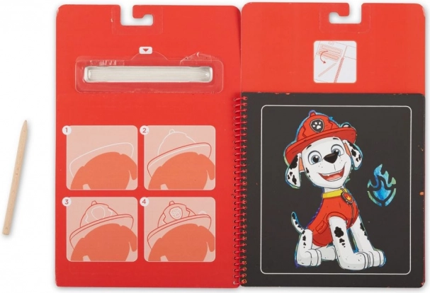 Sub stratul negru se ascund culori vii și scene cu Marshall. Copiii se vor bucura de efectul „wow” la fiecare zgârietură.