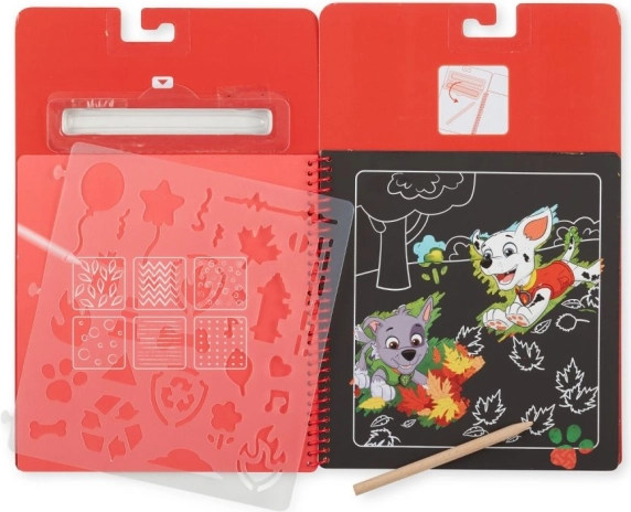Blocul spirală pentru zgâriere cu tematică PAW PATROL – Marshall combină magia imaginilor care se dezvăluie cu șabloane practice. E suficient să zgârii ușor cu stylusul din lemn, iar sub stratul negru apar culori strălucitoare și ilustrații detaliate ale eroilor preferați. Excelent pentru primele încercări de desen, răbdare și concentrare.