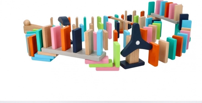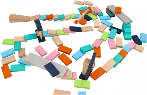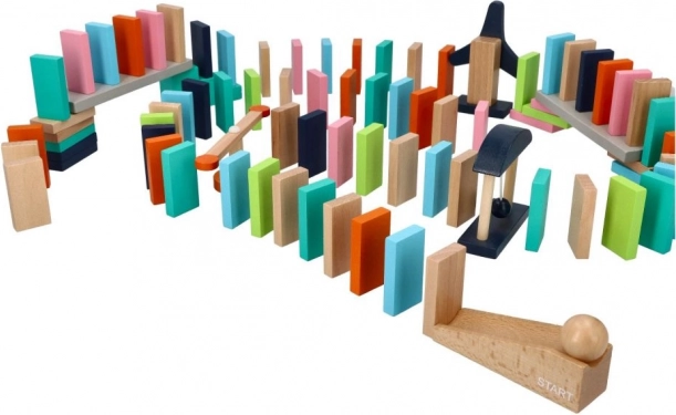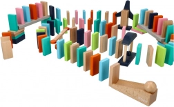 Construiți propriul domino rally, de la linii simple la trasee pe mai multe niveluri. Setul complet din lemn certificat oferă culori moderne, finisare de calitate și accesorii bogate pentru un joc dinamic. Datorită elementelor interactive apar efecte surprinzătoare, iar copiii își exersează răbdarea, concentrarea și înțelegerea principiului cauză–efect.
