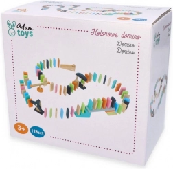 Descoperiți distractivul și educativul domino colorat din lemn cu 128 de piese, care îi îndeamnă pe copii să creeze trasee creative și reacții în lanț. Setul cu carusel, morișcă, poartă cu bilă, trepte și poduri dezvoltă motricitatea fină, gândirea logică și imaginația spațială. Potrivit de la 3 ani, ideal pentru joacă în familie sau în grup.