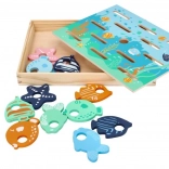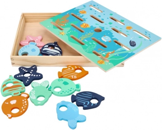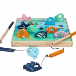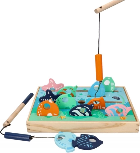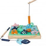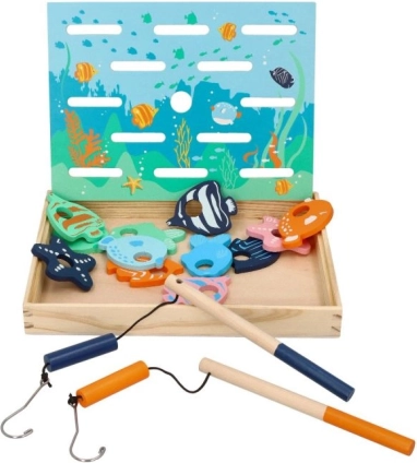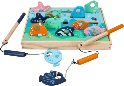 Jocul de pescuit din lemn este conceput pentru copiii care adoră să se joace și să învețe lucruri noi. Acest set interactiv include undițe de lemn cu magneți și pești colorați, proiectați să simuleze capturarea peștilor reali.