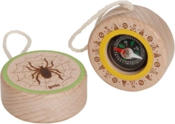Descoperiți lumea cu busola din lemn GOKI, care combină funcția practică cu un design jucăuș. Busola are un șnur pentru atașare ușoară de haine sau rucsac, astfel încât copiii să o aibă mereu la îndemână. O parte servește drept busolă funcțională, iar cealaltă este decorată cu un păianjen drăguț într-o pânză de păianjen.