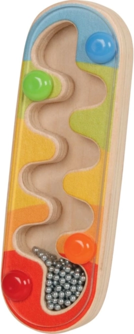 Acest baston de ploaie colorat este conceput să captiveze copiii prin simplitatea și efectul său. La rotire lentă, bilele depășesc mici obstacole și sună ca picăturile de ploaie. Jucăria stimulează simțurile vizuale și auditive și reprezintă o introducere grozavă în lumea ritmului și a muzicii.
