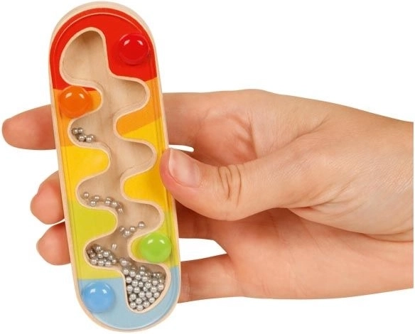 Biluțele fine creează un foșnet plăcut ce amintește de ploaie – ideal pentru perceperea ritmului și joc calm.