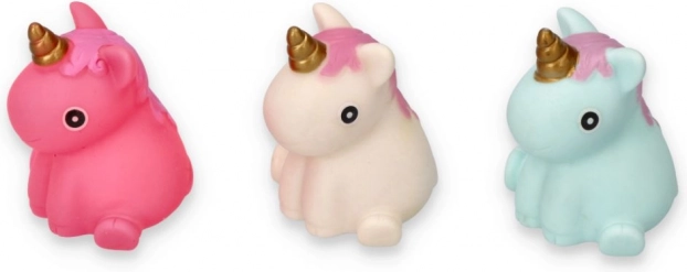 Descoperă lumea magică a băii cu setul de unicorni în culori delicate. Fiecare unicorn are un corn auriu și o coamă veselă, care stimulează imaginația copiilor. Datorită materialului moale și plăcut, se pot strânge ușor în mână și sunt ideali pentru mâinile mici ale copiilor.