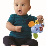 Fabricată din materiale sigure, potrivite pentru mușcat. Urechile moi și culorile vii stimulează percepția senzorială.