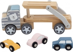Platforma de tractare din lemn VIGA PolarB aduce copiilor distracție și învățare într-un singur produs. Setul include camionul cu remorcă și trei mașinuțe colorate, care pot fi încărcate cu ușurință folosind rampa rabatabilă. Lemnul rezistent și execuția atentă asigură o durată de viață îndelungată, în timp ce culorile netoxice conforme cu standardele EN71 și ASTM garantează siguranța în joaca de zi cu zi.