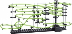 SPACERAIL Glow este un set de construcție creativ pentru pasionații de tehnică, logică și inginerie. Din piese din plastic și metal și fir fosforescent vei asambla o pistă elaborată pentru bile pe o bază stabilă. În timpul construcției modelezi arcuri, bucle și coborâri și reglezi trecerea ideală a bilelor.