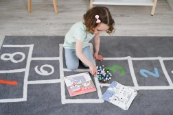 Copiii asociază biluțele colorate cu ilustrațiile animalelor și cu modele simple. Învățarea culorilor, număratul și sortarea au loc natural, prin joc.
