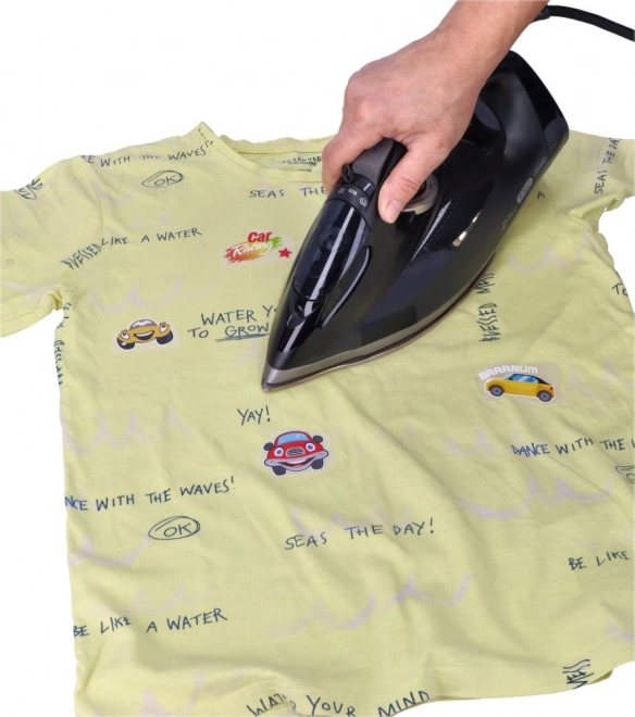 Așază motivul pe material, acoperă cu hârtie de copt și calcă. Fără cusut, doar un rezultat curat și durabil în câteva clipe.