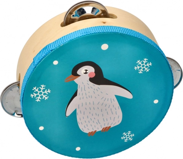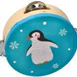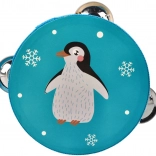 Această tamburină colorată cu ilustrație de pinguin este o alegere excelentă pentru primii pași muzicali. Datorită dimensiunilor compacte se ține bine în mână și susține coordonarea, ritmul și percepția auditivă. Rama solidă din lemn și plăcuțele metalice de calitate creează un sunet clar, care îi încântă pe cei mici.