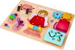 Diverse închideri, cum ar fi fermoare și nasturi, învață copiii gândirea logică și le susțin independența în îmbrăcare.