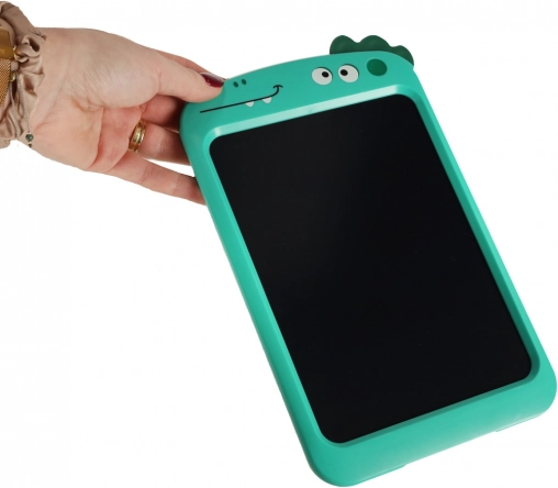 Tableta noastră de desen turcoaz cu motiv de dinozauri este creată pentru mici artiști. Este echipată cu o suprafață neagră pentru scris și un stilou, permițând copiilor să-și dezvolte creativitatea și abilitățile motorii. Tableta înlocuiește blocurile tradiționale de hârtie și principalul său avantaj este că este sigură pentru ochi, deoarece nu emite radiații nocive.