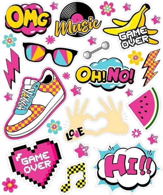 Coală mare de patch-uri termocolante cu motiv OMG, dimensiune 20 × 30 cm, pentru decorarea rapidă și stilată a hainelor și textilelor. Patch-urile rezistă la spălare manuală și la mașină până la 40 °C (spălați pe dos), se aplică ușor cu fierul de călcat și conferă imediat pieselor voastre un aspect original.