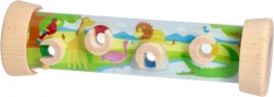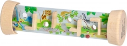 Datorită dimensiunilor compacte (⌀ 4,5 cm × 15,5 cm) este ideal pentru călătorii, săli de așteptare și pentru acasă. Capetele din lemn solide și finisajele de calitate asigură durabilitate și utilizare în siguranță. Designul cu animale sălbatice îi atrage imediat pe cei mici și îi motivează la noi încercări.