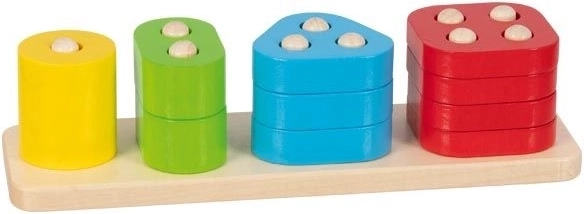 Descoperiți un joc motric distractiv care dezvoltă motricitatea fină, logica și cunoașterea. Datorită culorilor vii și formelor diverse, copiii își exersează jucăuș îndemânarea degetelor, sortarea și concentrarea. Execuție sigură din lemn, tijă de înșirare cu pini și 10 piese colorate fac din această jucărie o alegere ideală pentru copiii de la 2 ani.